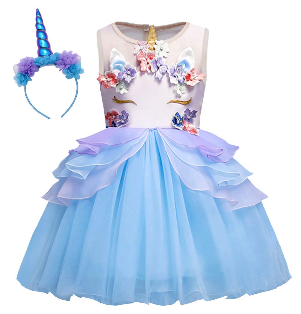 AmzBarley Girls Unicorn Dress Princess Costume Tutu Flower Halloween Cosplay Birthday Party Dress up Clothes&Headband