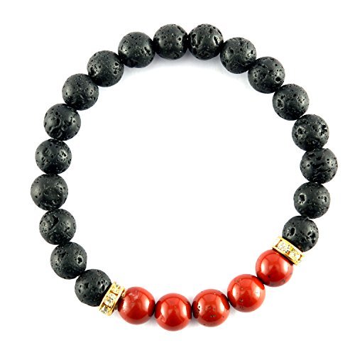 Real Title : Aatm Natual Healing Gemstone Lava with Red Jasper Charm Bracelet for Healing and Meditation (Beads Size - 7-8 mm)