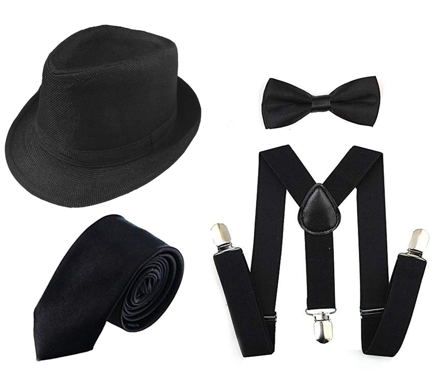 GCFIYPP 1920s Men Accessory Set Manhattan Hat, Y-Back Suspenders, Pre Tied Bow Tie,Gangster Tie Theme Party for Halloween,Christmas