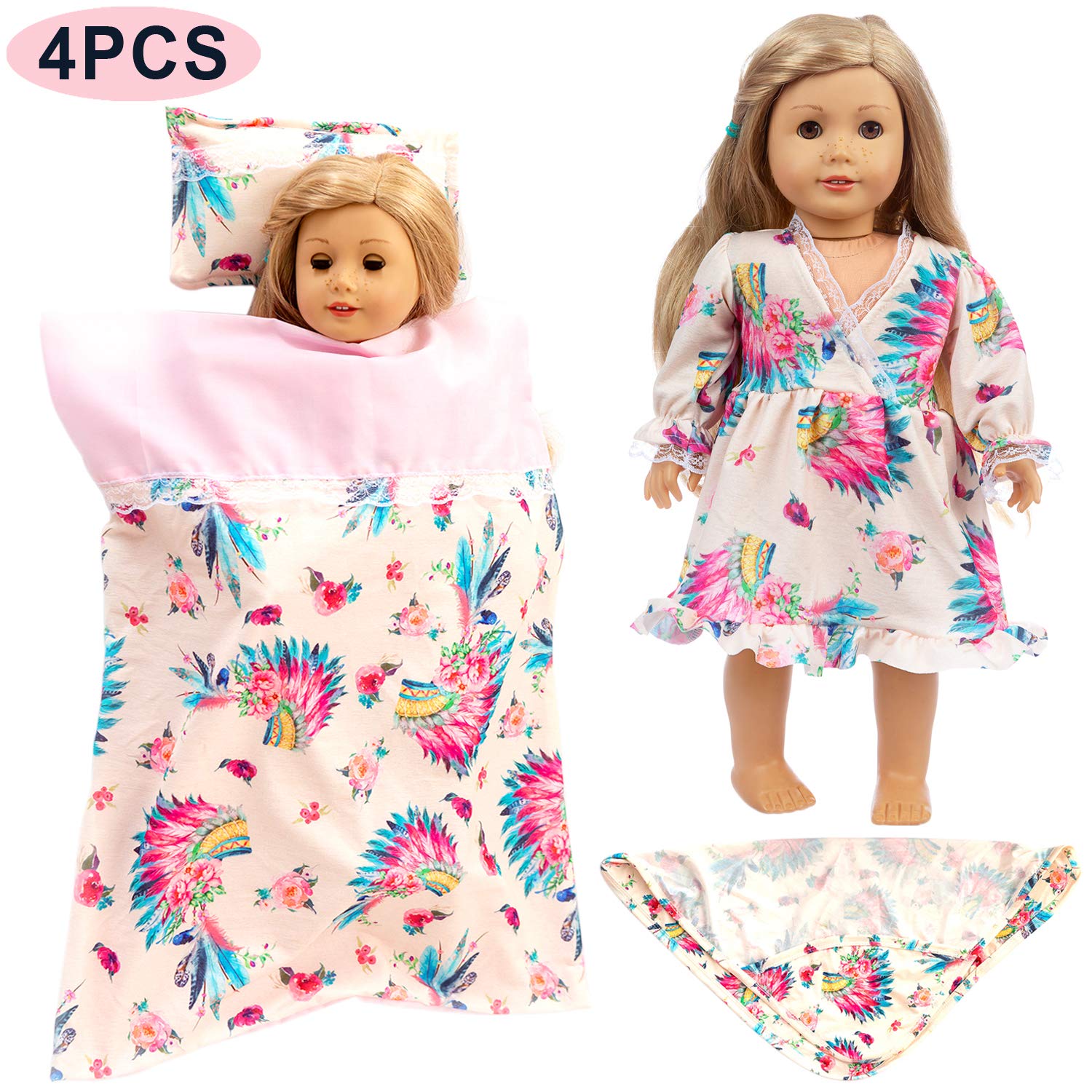 Real Title : ZITA ELEMENT 4 Items American 18 Inch Girl Doll Clothes and Accessories =1×Fashion Sleeping Clothes,1×Bathrobe Blanket,1×Sleeping Bed,1×Pillow Fits for 18 Inch Doll My Life Our Generation Journey Doll