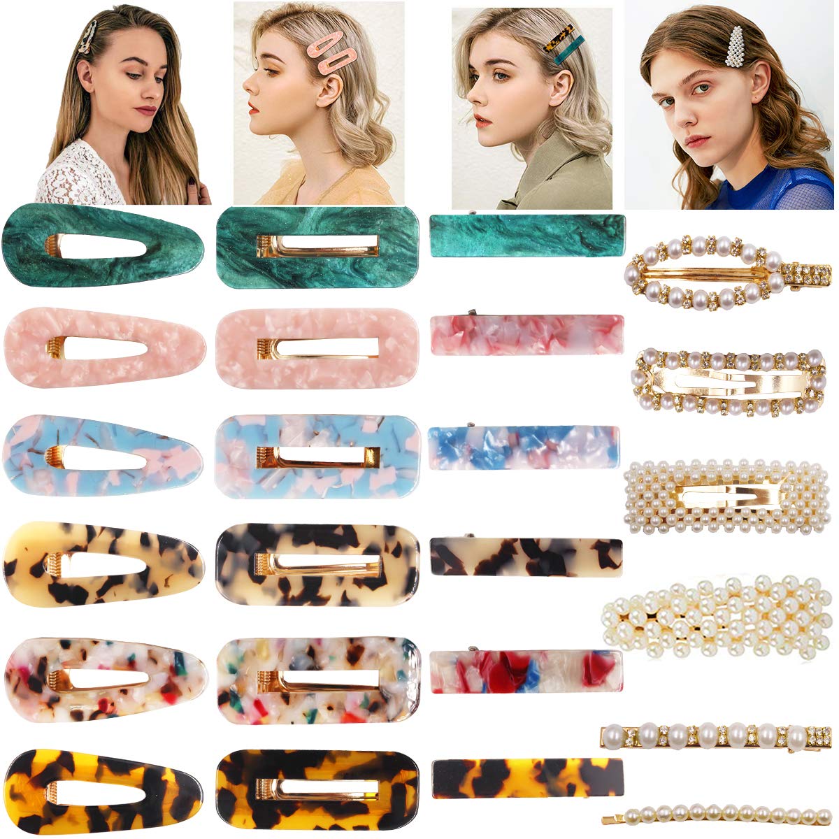 Real Title : 24PCS Acrylic Resin Hair Barrettes Pearls Hair Clips-Fashion Korean Style Handmade Pearl Hair Barrettes Rhinestones Hairpins Gold Duckbill Acrylic Hair Clips Elegant Hair Accessories for Girls Women
