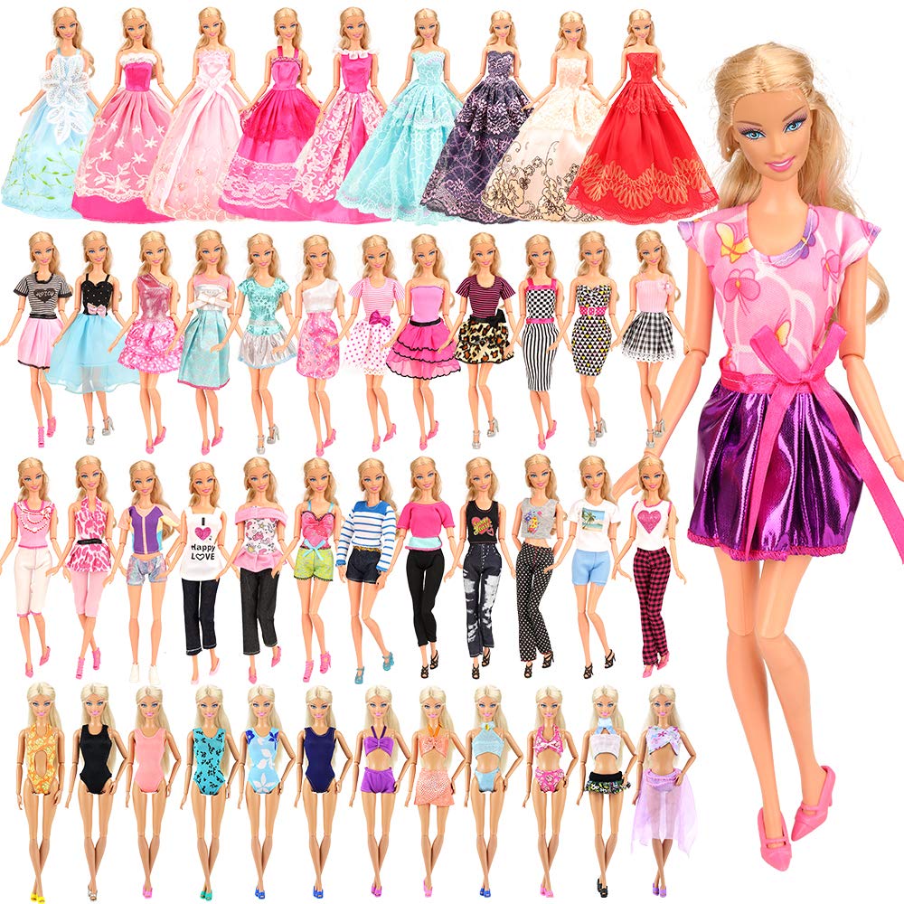 Real Title : Barwa 16 PCS 11.5”Doll Clothes 5 PCS Fashion Outfits 5 Sets Mini Dresses 3 PCS Wedding Grown Dresses 3 Sets Bikini Swimsuits for 11.5" Girl Doll