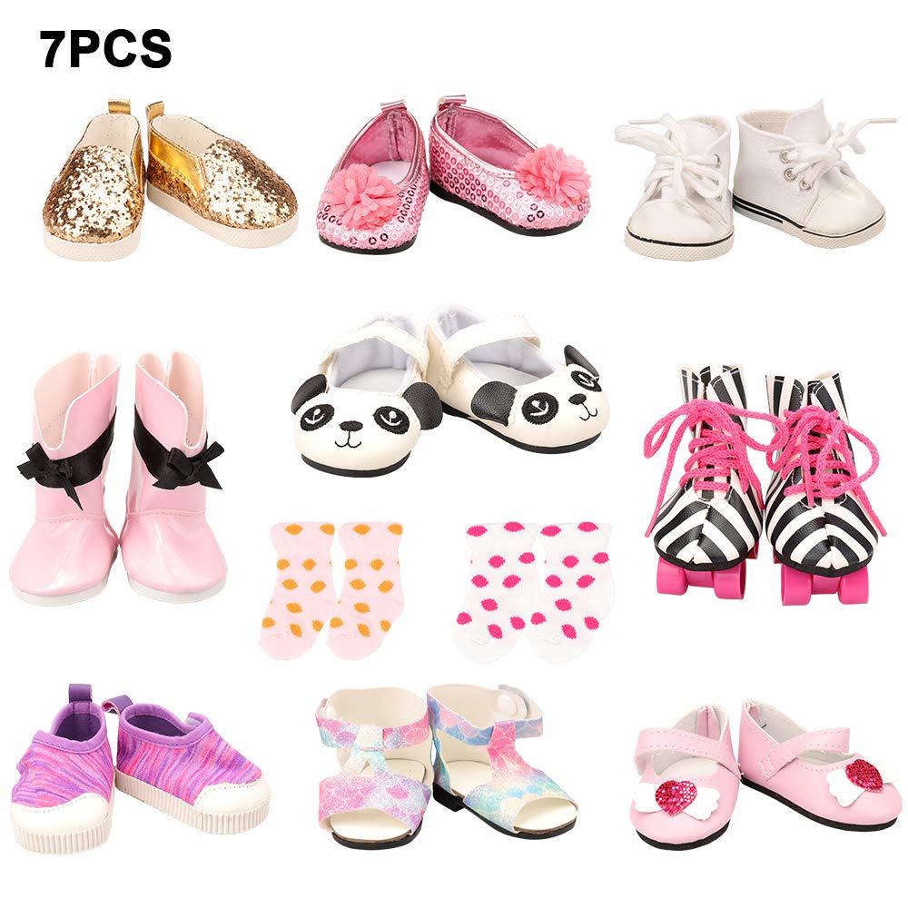 Real Title : Barwa 18 Inch Doll Shoes 5 Pair Shoes with 2 Pairs of Socks Accessories (Get Boots or Skates) for 18 inch Girl Doll
