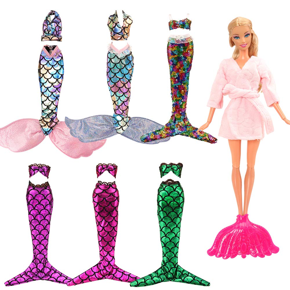 Real Title : Barwa Mermaid Tail Dresses with Top Rainbow Sequins Handmade Swinsuit Swimwear with Plastic Mermaid Tail Pink Pajamas Clothes