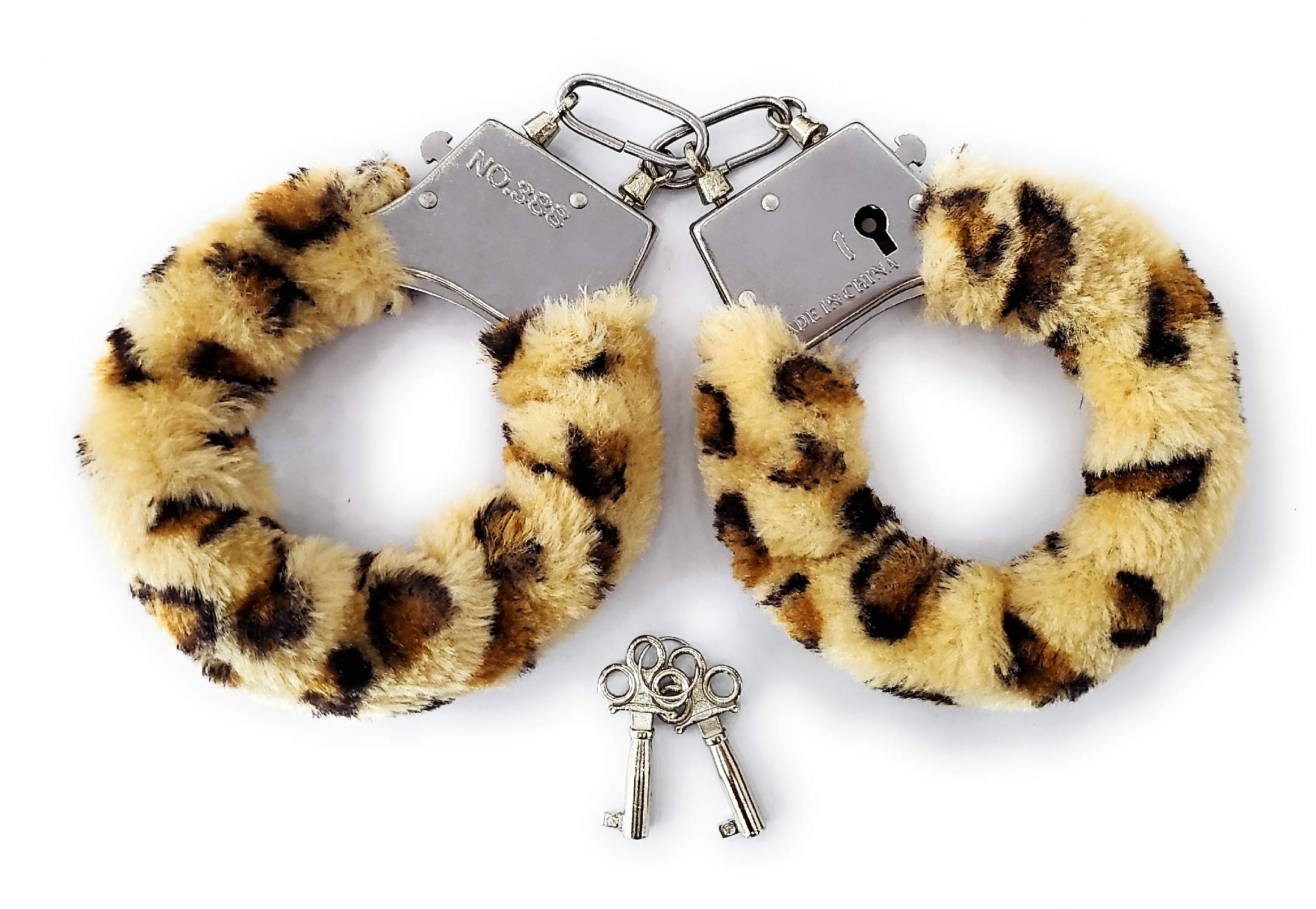 Real Title : JASINCESS Plush Toy Handcuffs with Keys Toy Police Costume Prop Accessories Party Supplies (Leopard Print)