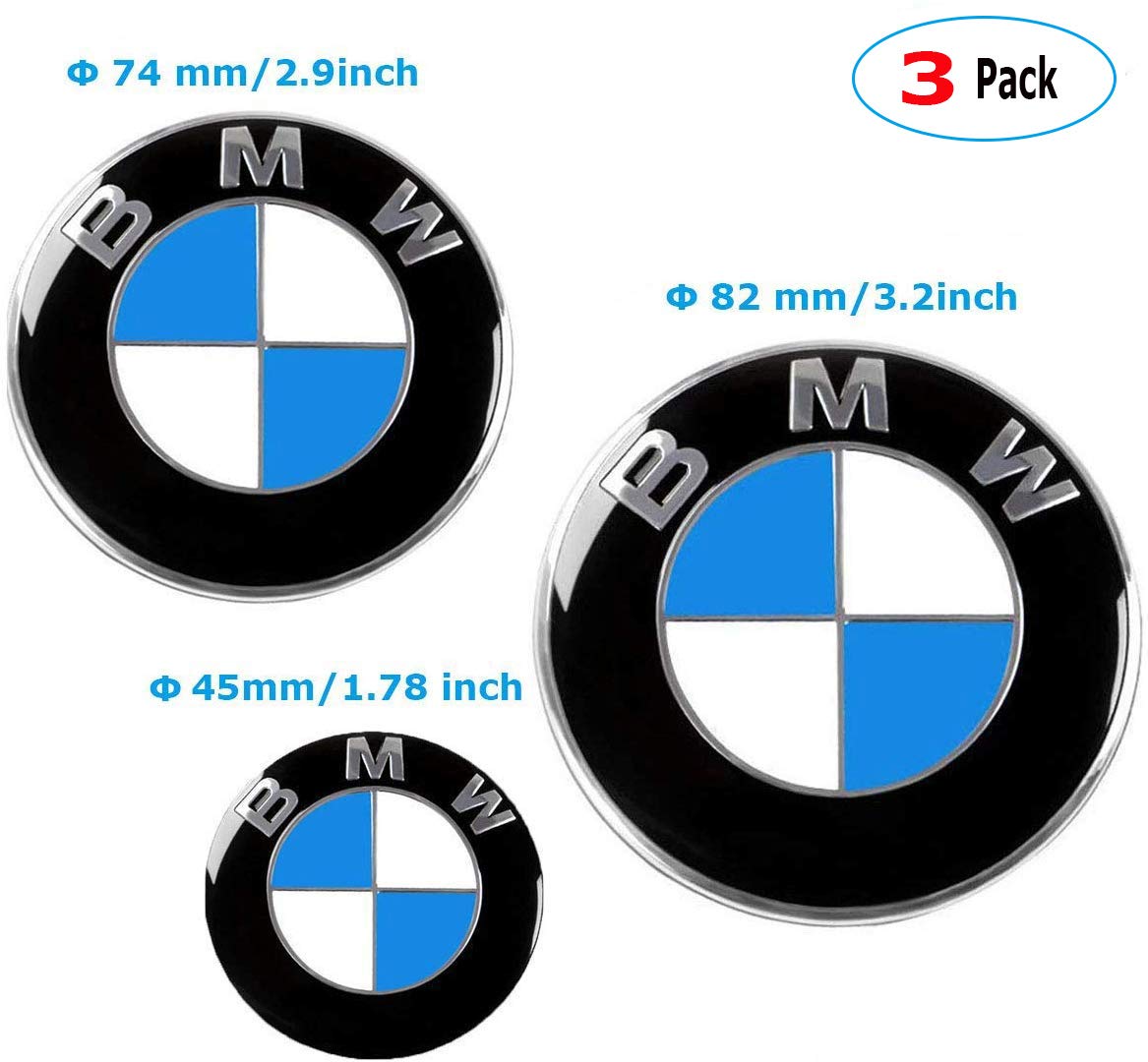 Real Title : Kingshun Emblem Logo Replacement for BMW, 3 Pcs Badge Roundel Emblem fit for BMW 1, 3, 5, 6, 7, X, Z-Series, Front Hood (82mm), Rear Trunk(74 mm), Steering Wheel(45mm)