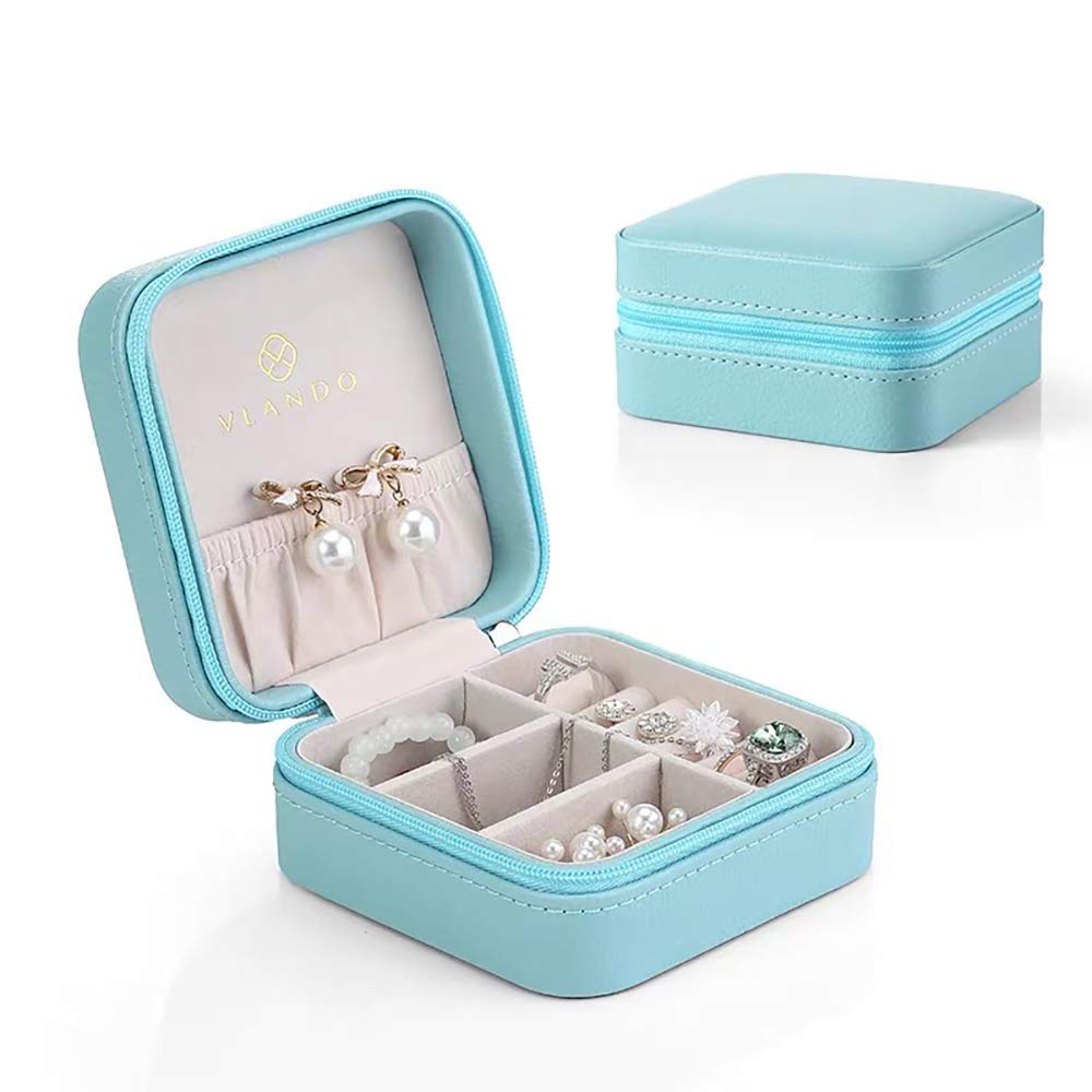 Real Title : Vlando Small Faux Leather Travel Jewelry Box Organizer Display Storage Case for Rings Earrings Necklace (Blue)