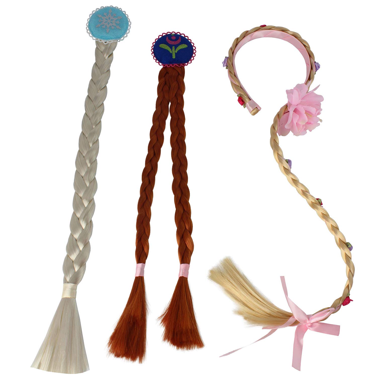 XiangGuanQianYing Princess Dress up Braided Wigs for Girls Costume Accessories 3 Piece Set