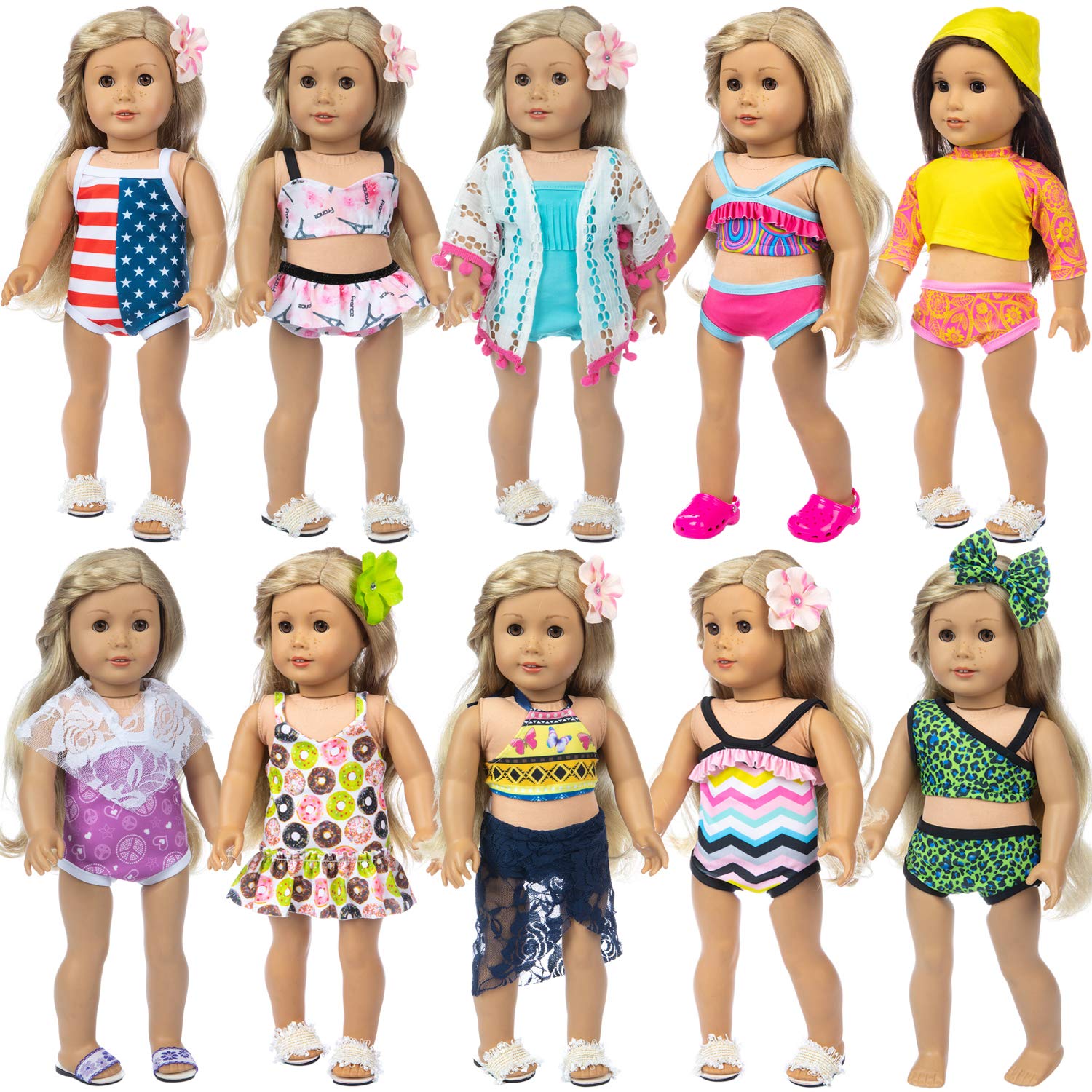 ZITA ELEMENT 10 Sets American 18 Inch Girl Doll Fashion Swimsuits Bikini Swimwear for 18 Inch Doll Swimsuits Summer Clothes Outfits